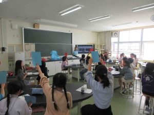 サントリー出前授業 サントリー出前授業 2025年9月24日 futamuradai-es 本日、4年生がサントリーさんから出前授業を受けました。 環境問題をテーマにした授業ですが、特にサントリーさんは水を大切にしていることから水の大切さが実感できる内容を実施してもらいました。 児童たちも自然を大切にすること、森を守ってきれいな水を後生につなげていかなければならないことを理解できたようです。