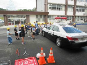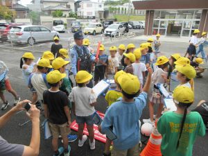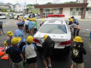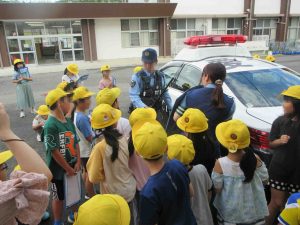 警察の仕事調べ 警察の仕事調べ 2025年9月29日 futamuradai-es 3年生が、警察官から仕事の内容やパトカーに積まれている装備品の説明を受けました。 児童たちは、パトカーに興味津々で、日頃、間近に見る機会がないので興奮気味でした。 警察の仕事についていっぱいメモを取り、理解を深めていました。