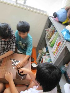 あおば学級のブーム あおば学級のブーム 2025年10月3日 futamuradai-es 地域の方から囲碁盤と碁石を寄付していただきました。 あおば学級に置いたところ、ブーム到来。 四目・五目並べがブームになり、皆で囲碁盤を挟んで放課に遊んでいます。 大変立派な囲碁盤をご寄付いただけたことに感謝申し上げます。