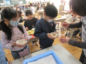 梅干しの味見 梅干しの味見 2025年12月10日 futamuradai-es 毎年行われている、本校で収穫した梅を利用しての「梅干し試食会」が行われました。 日本独特の梅干しに、子どもたちは酸っぱそうな顔をして味見をしていました。 保護者の了解のもと、本人が希望した者のみの梅干し試食会です。 外国にルーツをもつ子どもたちも挑戦していたようです。
