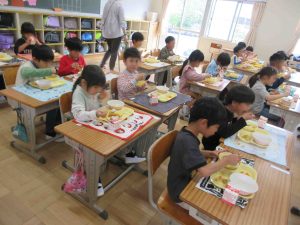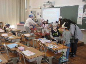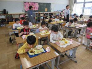 1年生の初めての給食 1年生の初めての給食 2026年4月20日 futamuradai-es 今日、1年生は初めての給食を経験しました。 4時間目から、給食の準備に取りかかり、小学校でのやり方を学んでいました。 慣例で、初めての給食はカレーです。 好き嫌いせず、もりもり食べて大きく育ってください。