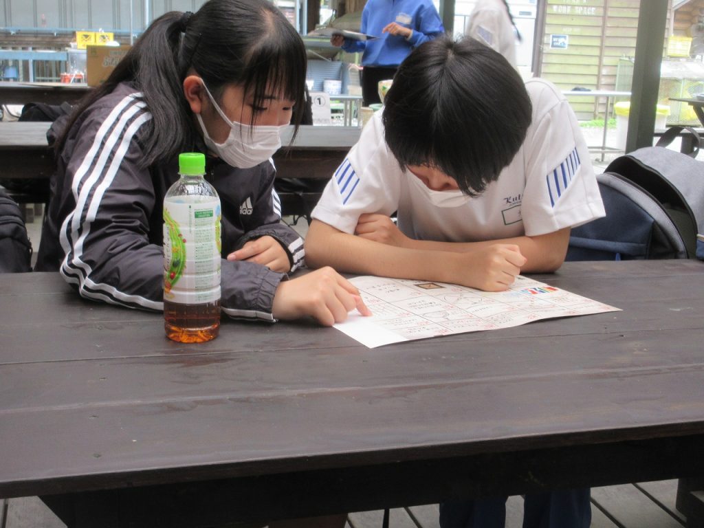 2年社会科「日本の地域的特色」では教育実習生が研究授業を行いました。日本の気候の特色についてペア毎に分担して調べ学習を進めていました。授業後、大学の担当教官から授業の振り返りをしているところをパチリ。将来、現場での活躍を期待していますよ。他の3人はあと1週間実習が続きます。