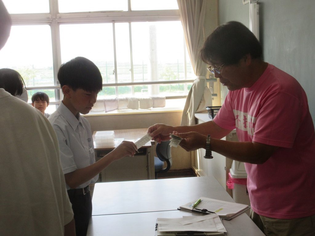 朝のST時、2年生に定期テストの個票が配付されていました。じっくり見ていましたね。下校時「校長先生、テストの結果が良かったです」とウキウキで報告してくれた人がいました。自分に合う学習方法が見つかったようですね。この調子で。3年生の個票は昨日配付済み、1年生は明日配付予定です。