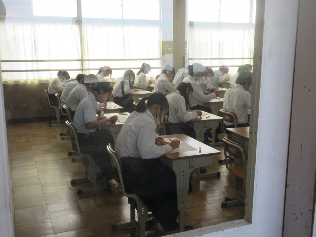 朝8時ごろの教室の様子です。3年生はもちろん真剣にテストに臨む姿勢ができていますが、今回2年生のテストに向かう姿勢が今まで以上に良い雰囲気を感じました。確実に成長していることを実感します。あと1日挑め沓中生!
