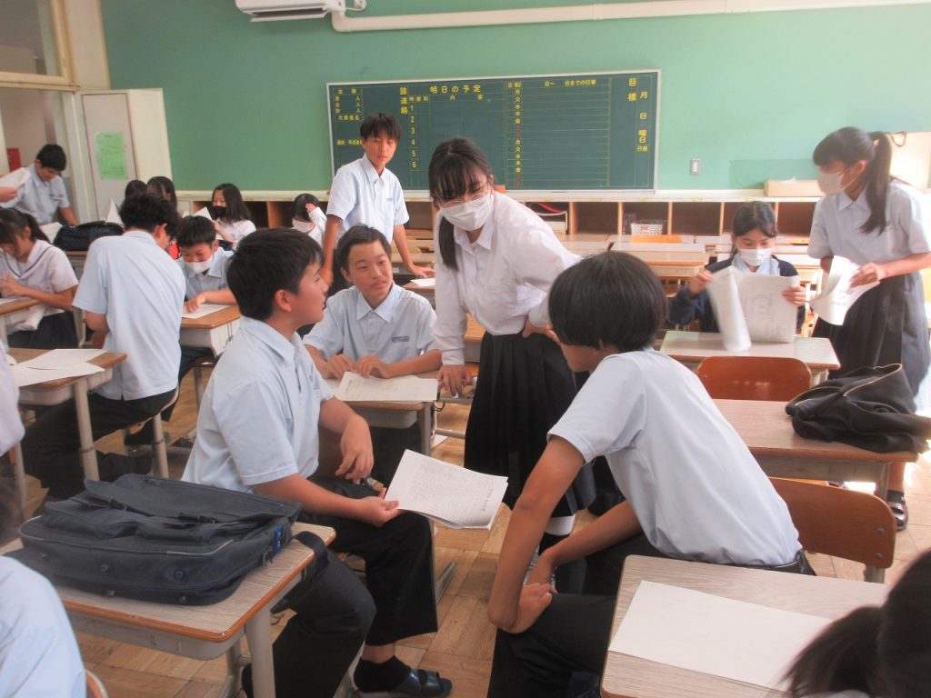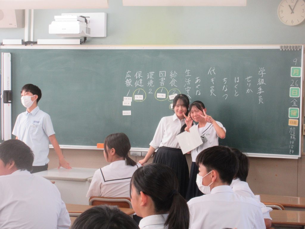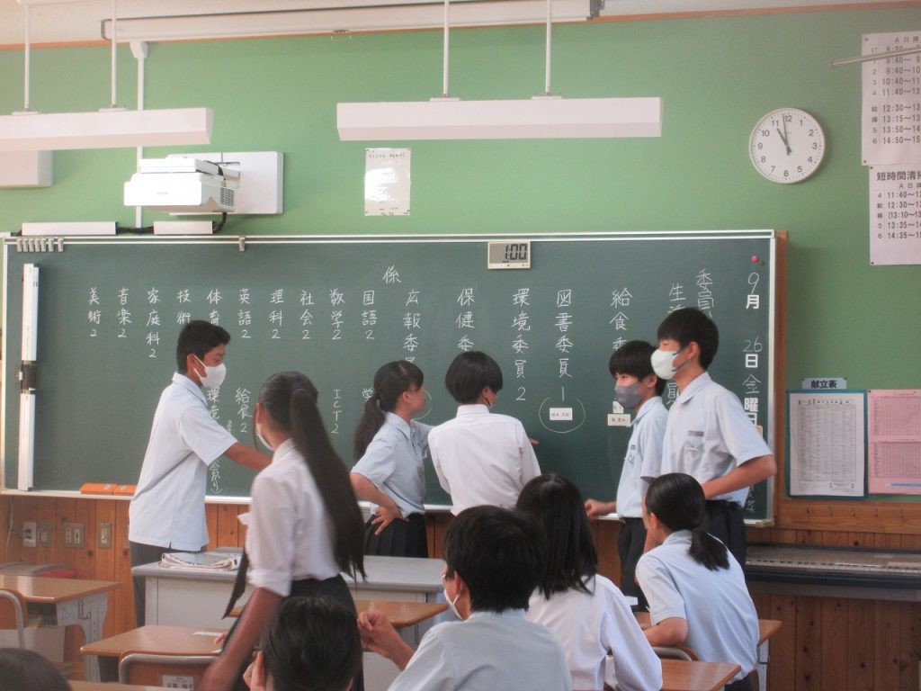 2年生は後期の学級組織を決めていました。学級委員や代議員など多くの生徒が立ち上がってくれました。また、委員会決めではじゃんけんで盛り上がっていたクラスがありましたね。自分の役割に責任をもつことも自分の成長につながります。学級委員中心に素敵なクラスを作り上げてくださいね。