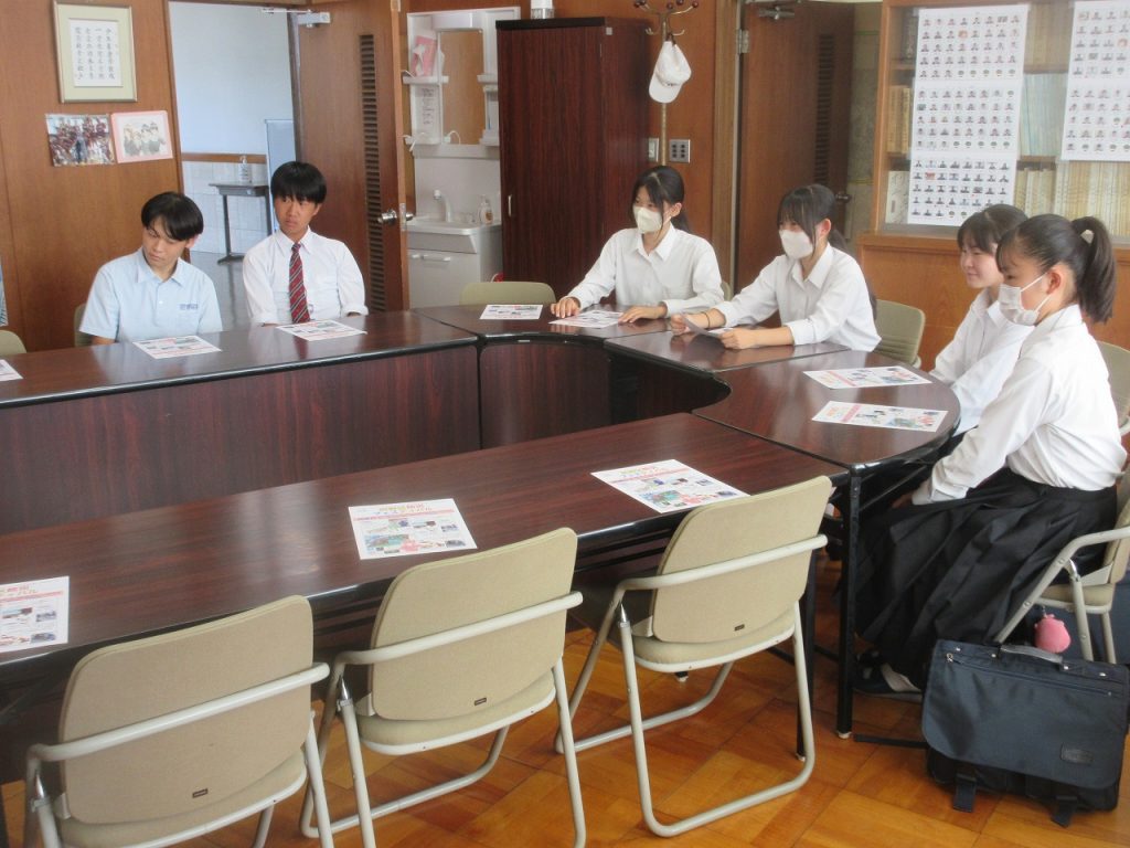 北部児童館の館長さんがお昼の放送で児童館のイベントの紹介を伝えに来ました。①「ティーンズホッとカフェ」②「おしゃ勉」です。放送でも言っていましたが、愛教大の学生が勉強を教えてくれるそうなので、有効活用してみてはいかかですか。詳細は職員室前のチラシを見てください。
