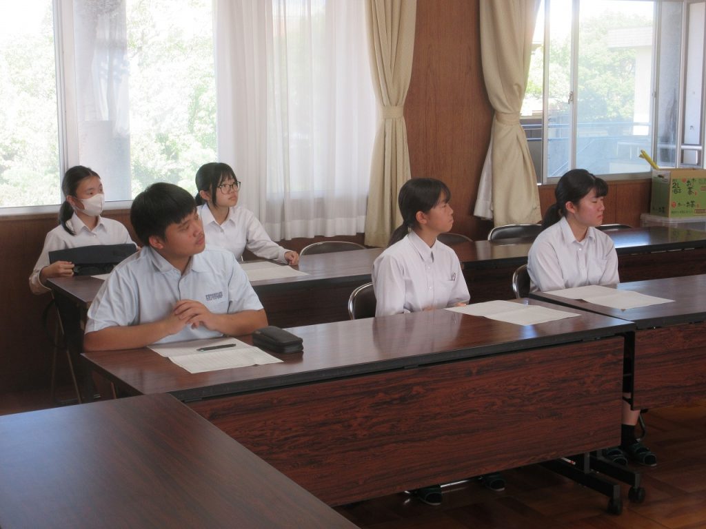 前期生徒会役員の生徒が朝会の準備と発表の打ち合わせをしていました。いつもありがとう。あと少しよろしくお願いします。今朝は教育実習生のあいさつからスタート。校長講話では世界陸上女子100mH福部選手の座右の銘「顔晴る」の話から「夢」と「儚」・「吐」と「叶」の漢字を使って話をしました。詳しくはご家庭で聞いてみてくださいね。