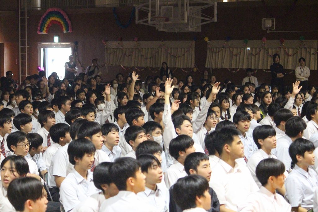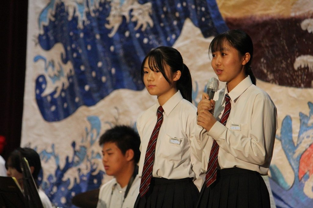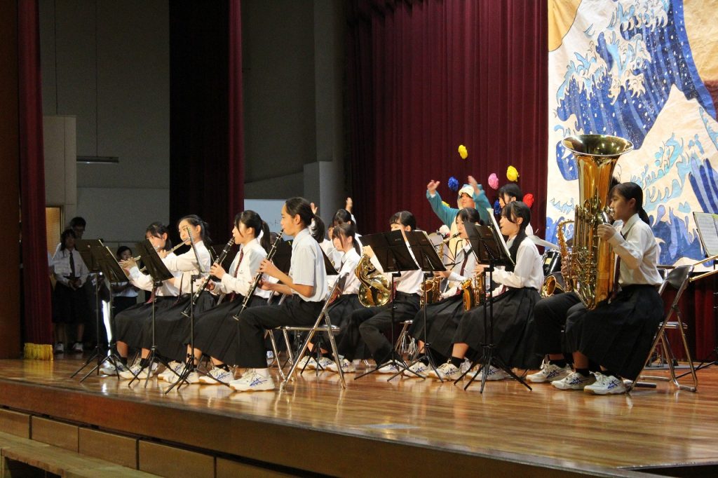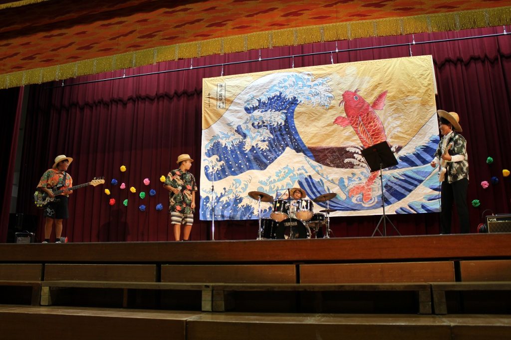 歌声の会の後、吹奏楽部の演奏から始まりました。最初の曲からいきなり会場は盛り上がりましたね。歌にバンドに太鼓の達人と舞台と会場が一体となって楽しめましたね。幕間には実行委員からイントロクイズもありました。