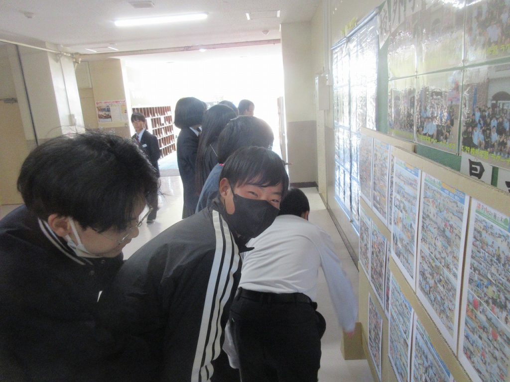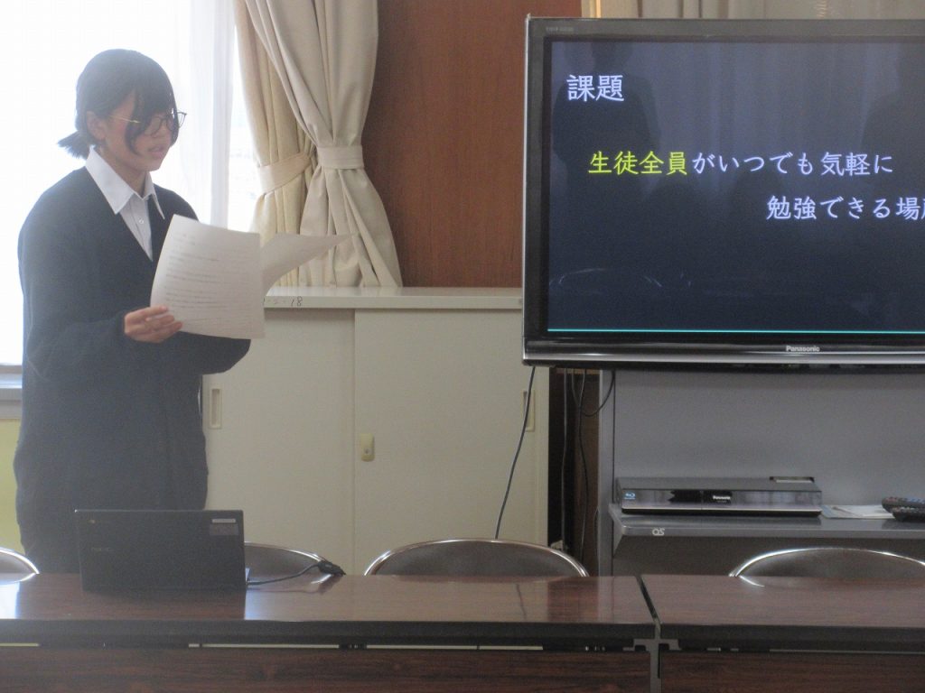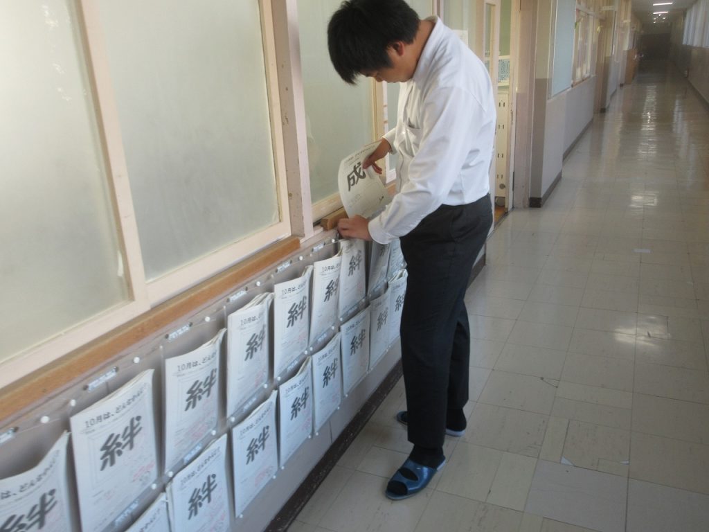 朝のST1年生の教室ではロッカーの整頓をしているクラスもあれば、学級委員がクラスの課題についてアンケートをもとに集計をまとめ発表しているクラスがありました。あとオープンウインド64のアンケートの入力、2年生はいじめアンケートに記入していました。