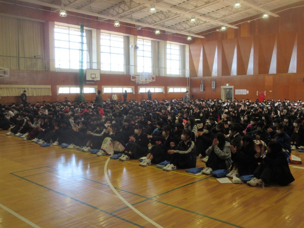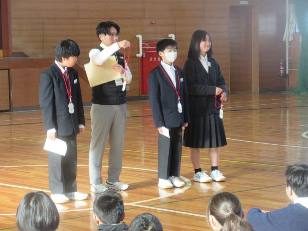 生徒会からは「Let‘s try!(沓中生への挑戦状)」と「学校かくれんぼ」について全校生徒に提案がありました。3年生が退場した後には1・2年生に㊙の提案がありましたね。