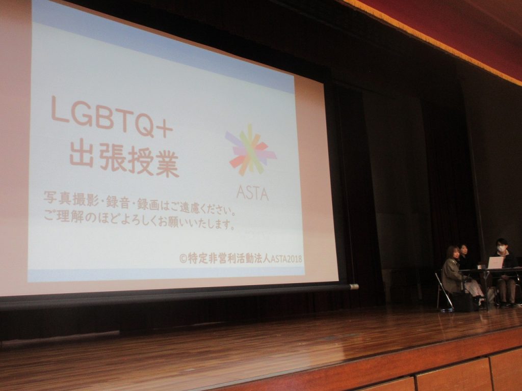 4限体育館でLGBTQの講演会を行いました。性のあり方は「Gradation」違いを知ることがまず大切。当事者の気持ちを聞くことで互いを尊重する大切さを感じたのではないでしょうか。また、当事者の保護者の立場としてのお話しでは「私の失敗と子どもに教えられたこと」について考えさせられるお話をしていただきました。