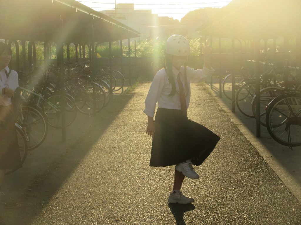 学校祭フィナーレも終えて、昨日雨天でできなかった運動場のテントの片付けをしている様子を見に行くとなんと薄明光線が見えました。これを調べてみると→「幸運の前兆: 天使の梯子は幸運が訪れる前触れとされ、運気が上昇するとされる。」とありました。テントを片付けている中には係ではなく、様子をみて進んで手伝いをしてくれている人もいました。気付いて幸動できる沓中生はやっぱり最高です。こういう姿が本当にうれしいですね。最後まで協力してくれてありがとう。最後の写真は自転車置き場でダンスをしていた人をパチリ。楽しい時間を過ごせて見ているだけで幸せな気分にさせてくれました。