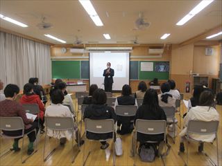 11月13日(木)の授業参観後に、PTA主催「今こそ知りたい情報モラル」研修会が行われ、24名の保護者に参加をしていただきました。愛知警察署のスクールサポーターを講師に迎え、「オンラインゲームをきっかけとする犯罪被害にあわないためには」というテーマなど、保護者にとって興味のある内容について話を聞きました。参加した保護者はとても熱心に話を聞き、子どもに対してどのように接したらよいかを考えながら真剣に講師の話を聞いていました。今回の研修を各家庭で子どもへの対応に生かしていただけたらと思います。