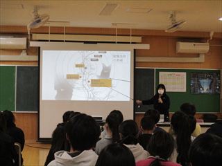 11月28日(金)の6限に、6年生が家族・流証言者等派遣事業で講師を招いて、交流証言講話を聞きました。原爆が落とされるまでの日本や世界の状況、そして、原爆が落とされたときの長崎の様子について、被爆者から直接受け継いだ体験を語り継ぐ「交流証言者」の方から、スライドを見ながら、わかりやすく話をしていただきました。その後、実際に長崎で被爆をされた方の具体的な話を聞き、原爆の恐ろしさを改めて感じていました。この話を聞いて、これからの世界のことを考えるときに、参考にしてほしいと思います。