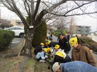 1月15日(木)の6限の委員会の時間に、環境サポ隊の活動が行われ、3名のサポーターの方に参加をしていただきました。園芸委員会の児童とサポーターが一緒になって、アリッサムとノースポールの苗を植えました。会話しながら楽しそうに苗植えをしていました。苗植えが終わった後には、花壇整備などのサポートをしていただきました。今日植えた苗が、これから大きく育ち、学校にどんな彩りをみせてくれるか楽しみです。