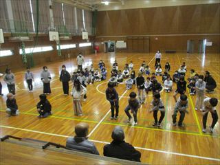 2月18日(水)のベーシックタイムに4年生が6年生を送る会の学年の出し物の練習をしました。6年生に御礼の気持ちを伝えるために、6年生が楽しめる踊りやクイズなどの出し物を練習していました。たまたま来ていた三崎小サポーターん方にも見ていただきました。本番がとても楽しみです。