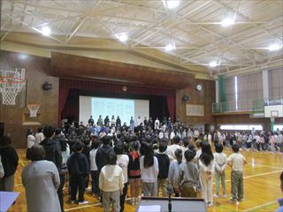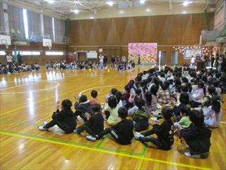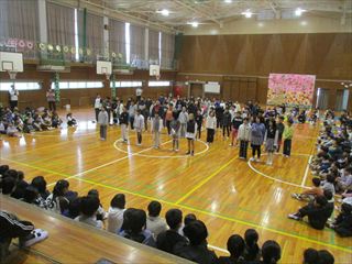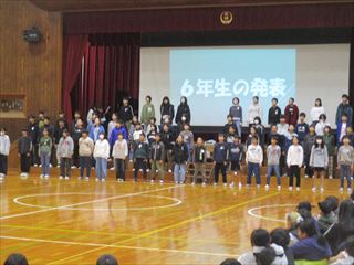 3月2日(月)に6年生を送る会を行いました。最初に5年生のオープニングで始まり、次に、1年生、2年生、3年生、4年生、5年生の順に発表しました。どの学年の発表も6年生への感謝の思いにあふれ、歌あり踊りありの楽しいた発表で、6年生のうれしそうな表情がとても印象的でした。その後、6年生の入学からこれまでの写真をまとめた映像を鑑賞し、6年生が、「ぼくらの日々」を歌いました。その後、校旗の引き継ぎが行われ、最後は、在校生から歌のプレゼントとして「大切なもの」、そして、校歌を歌って会が終了しました。この会を通して、とても温かい雰囲気に包まれまれるとともに、各学年のこの一年での成長を感じました。