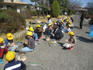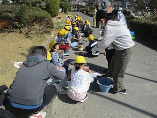 3月5日(木)と6日(金)の2日間、3年生が社会科「市の様子と人々のくらしのうつりかわり」の学習で、七輪での餅焼き体験を行いました。学習サポ隊の方にも手伝っていただきました。子どもたちは、今まで使ったことのない七輪に炭を入れて、必死に火を起こしていました。最初はなかなか火が起きませんでしたが、次第にコツをつかみ上手に火を起こしました。七輪に網を起き、その上にもちを置いて焼くと、餅が膨らみ、その様子にとても驚いていました。焼き上がった餅は、自分で持ってきた醤油やきなこをつけて食べていました。子どもたちは、とても満足げな表情でした。