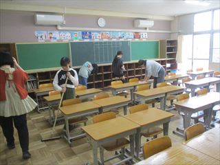 4月7日(水)の午前中に、翌日行われる入学式の準備を新6年生と教職員で行いました。式の会場である体育館だけでなく、廊下や教室の飾り付けも行いました。新6年生の子どもたちが、入学してくる新1年生のことを思いながらてきぱきと行動して、スムーズに準備をすることができました。明日の入学式で、新1年生が気持ちよく、元気に学校で過ごす準備が整いました。明日の入学式がとても楽しみです。