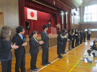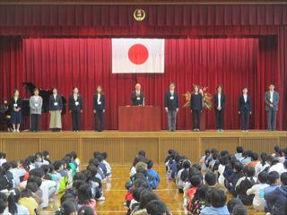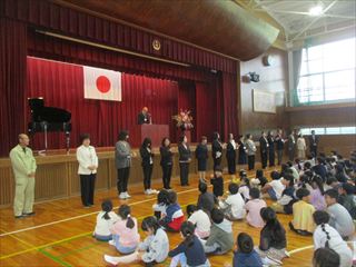 4月9日(木)に、赴任式・始業式を行いました。最初に、今回の異動で三崎小に来た11名の先生方の赴任式を行いました。ステージ上で一人ずつ順番に自己紹介をしました。その後、引き続き始業式を行いました。校長式辞では、「ウェルビーイングな学校にしよう」という内容で、毎日を安心して過ごすことができ、学校にいると、なんだかほっとする」学校にしたいと話がありました。子どもたちは話をしっかりと聞き、子どもたちの今年にかける思いを感じることができました。校長式辞の後は、担任とお世話になる先生方の紹介を行いました。子どもたちは、温かい雰囲気の中で先生方と顔合わせをしました。始業式後には、前期児童会役員の任命を行いました。その後は、教室に戻って、初めての授業となる学級活動や学年集会を行いました。今年一年のよいスタートを切ることができました。