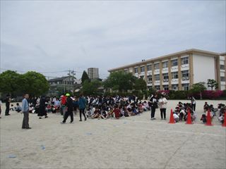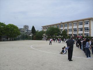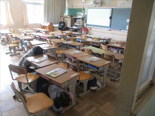 4月22日(水)の2限に避難訓練を実施しました。今回の避難訓練は、地震における避難の仕方を理解することと、避難経路を確認することを中心に訓練を行いました。最初に、各学級で避難時の基本の行動を確認し、9時45分に地震発生の放送で、子どもたちは各教室で机の下にもぐり、第一次避難をしました。その後、運動場に第二次避難を行い、人員点呼をしました。子どもたちは、静かに落ち着いて避難をしていました。第二次避難後は、防災担当者と校長先生から話を聞きました。これからも訓練に真剣に取り組み、災害が起きたときに、落ち着いて行動できるようになってほしいと思います。