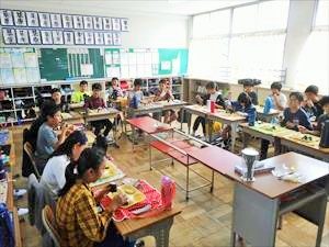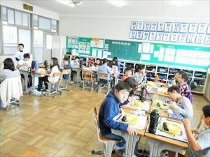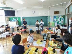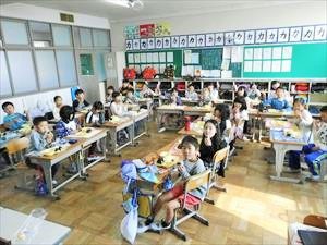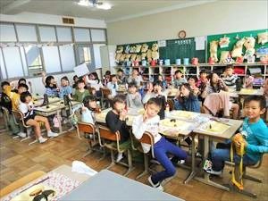 にぎにぎ会のメニューは、「おにぎり、ふかしイモ、たくあん、ゼリー」です。各クラスごとにPTA委員さんより、「大宮農園に感謝の気持ちをもってほしい」というお話をしていただき、会食をしました。どのクラスも笑顔いっぱいの会食となりました。新米のおにぎりは、とても美味でした。サツマイモも、柔らかくてほどよい甘さでした。5年生、6年生のみなさん、おいしいお米とサツマイモをありがとう!そして、本日、にぎにぎ会の準備をしてくださった皆様、本当にありがとうございました。