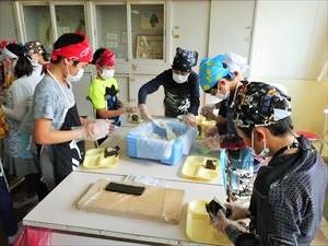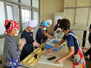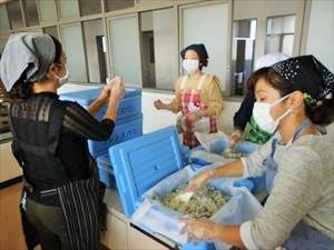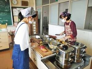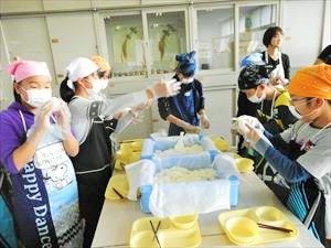 本日の「にぎにぎ会*」のために、PTA会長さんやPTA厚生部員のみなさん、それにPTA委員さんやボランティアのみなさんが20名以上集まり、大宮小の児童のために”おにぎり”と”ふかしイモ”を作ってくださいました。6年生は、各自でおにぎりを握ります。5年生が育てて収穫したお米と、6年生が育てて収穫したサツマイモです。サツマイモは、PTA厚生部員さんが事前に洗ってくれました。(*大宮農園で穫れたお米を”おにぎり”にし、収穫に感謝して「おにぎりとふかしイモ」をいただく会)