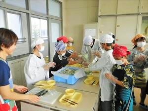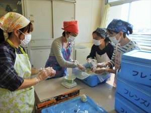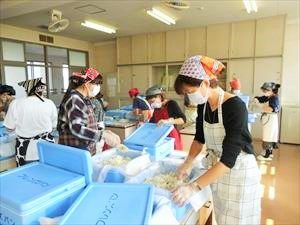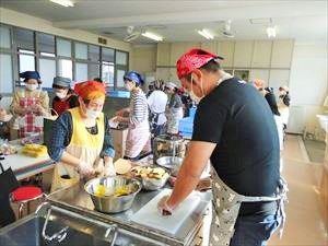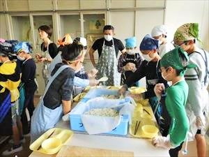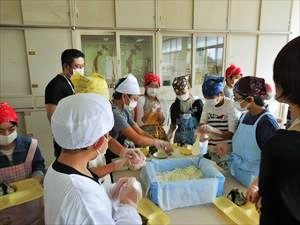 本日の「にぎにぎ会*」のために、PTA会長さんやPTA厚生部員のみなさん、それにPTA委員さんやボランティアのみなさんが20名以上集まり、大宮小の児童のために”おにぎり”と”ふかしイモ”を作ってくださいました。6年生は、各自でおにぎりを握ります。5年生が育てて収穫したお米と、6年生が育てて収穫したサツマイモです。サツマイモは、PTA厚生部員さんが事前に洗ってくれました。(*大宮農園で穫れたお米を”おにぎり”にし、収穫に感謝して「おにぎりとふかしイモ」をいただく会)