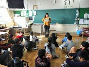 本日の業前は、教員や司書による読み聞かせでした。担任以外の先生による読み聞かせでしたので、やや緊張感があり、どのクラスもいつも以上に集中して聞いていました。最後には、読み聞かせをしてくれた先生に対して大きな拍手があり、大宮小学校児童の温かい心が表れていました。先生たちも、さわやかDAYでの挨拶活動直後の読み聞かせでしたが、よくがんばってくれました。