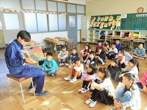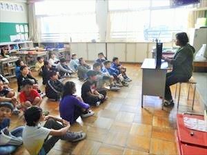 本日の業前は、教員や司書による読み聞かせでした。担任以外の先生による読み聞かせでしたので、やや緊張感があり、どのクラスもいつも以上に集中して聞いていました。最後には、読み聞かせをしてくれた先生に対して大きな拍手があり、大宮小学校児童の温かい心が表れていました。先生たちも、さわやかDAYでの挨拶活動直後の読み聞かせでしたが、よくがんばってくれました。