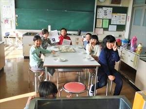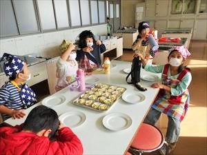 本日の1,2時間目に、おおみや学級の児童が、大宮農園で収穫したサツマイモを使って「鬼まんじゅう」と「スイートポテト」を作っていました。3人の児童の誕生日会を兼ねて、自分たちで作った2品をおいしそうに食べていました。私も頂きましたが、とてもおいしかったです。特にスイートポテトは、サツマイモの甘さとバターの風味が絶妙なハーモニーを奏でていました。