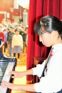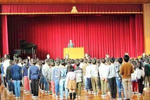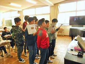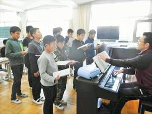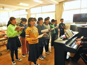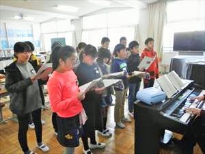 本日は6年1組の 音楽の様子をお伝えします。6時間目に職員室まで、大きな歌声が響いてきました。昨日と同様に音楽室では、6年1組の児童が「旅立ちの日に」をパートに分かれて歌っている最中でした。澤下先生のオルガン伴奏に合わせて、歌っていました。特にソプラノパートは、伸びのあるきれいな歌声でした。きっと卒業式に花を添えてくれることと思います。