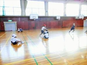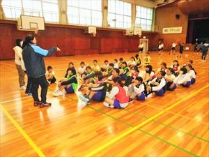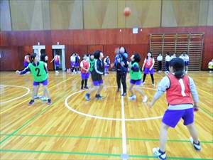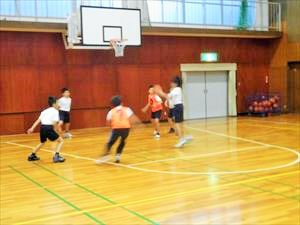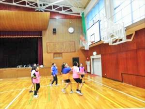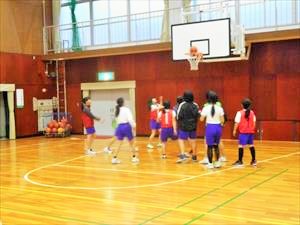 バスケットボール部女子は、顧問からの説明のあとに5年生対6年生の試合形式の練習を行っていました。