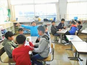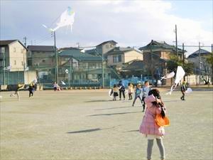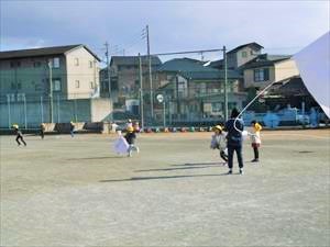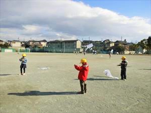 本日の5時間目に、1年生が生活科の授業で凧揚げをしていました。自分の好きな絵を描いた凧を、それぞれの児童が気持ちよく揚げていました。凧揚げには都合のよい風も吹いていましたが、凧糸が友達のものと 絡まってしまい、担任の先生に助けてもらっていた児童もいました。これからも昔ながらの遊びをたくさん経験してほしいと思います。