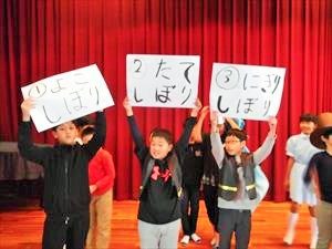 本日の業前は、「環境委員会による児童集会」と「児童会による挨拶活動の表彰」がありました。環境委員のメンバーは、劇を通して「掃除の必要性や雑巾のしぼり方」、それに「トイレを清潔に使うことの大切さ」を伝えてくれました。掃除大臣やトイレの王子様も登場して、全校児童が楽しく学べました。環境委員会のみなさん、ありがとう!児童会は、先週行った挨拶活動で挨拶がしっかりできていた通学団を表彰しました。児童会役員のみなさん、表彰状作りお疲れ様でした!