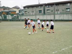 サッカー部は、基本練習のあとにBチームとCチームの試合形式の練習を行っていました。