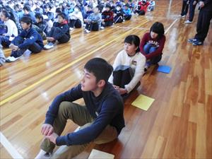 本日の始業式は、2学期の終業式と同様に、落ち着いた雰囲気の中で行うことができました。 式の中で児童代表の言葉として、5年男子と6年女子がそれぞれ、新年の抱負を語ってくれました。最高学年を迎える自覚や中学校生活への期待など、頼もしさを感じさせるとても上手な発表でした。また、どの児童も式辞をしっかりと聞いていたのが印象に残っています。それぞれの学年のまとめとともに次年度の準備をしっかりと行いながら、充実した日々を送ってくれることを願っています。