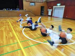 バスケットボール部男子は、基本練習のあとに試合形式の練習を行っていました。