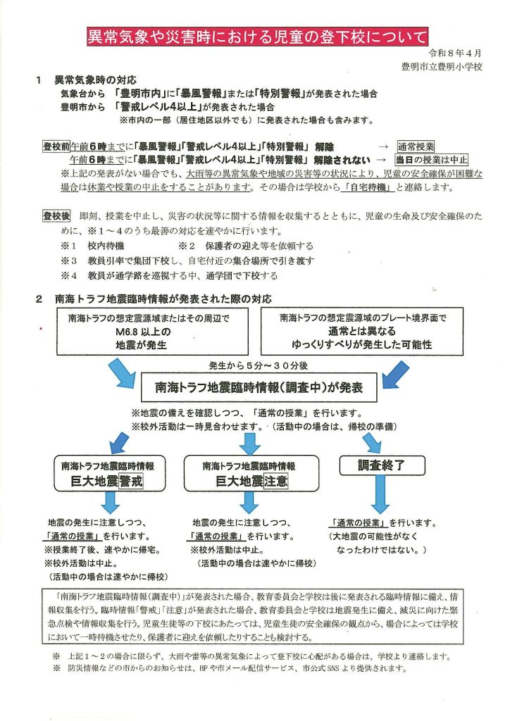 異常気象や災害時における児童の登下校について