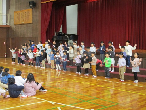 パプリカ 1年 歌声集会 パプリカ 1年 歌声集会 2025年12月19日 豊明小学校 1年生のみなさんが歌声集会で「パプリカ」を歌いました。楽しい踊りと素敵な歌声を披露してくれました。堂々と台詞を言う姿も素晴らしかったです。早朝からご参観いただきました保護者の皆様、ありがとうございました。