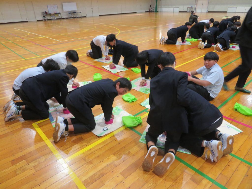 講師をお招きし、胸骨圧迫の仕方とAEDの使い方を学びました。いざというとき、人の命を救う勇気ある行動ができる生徒が増えてくれることを願っています。