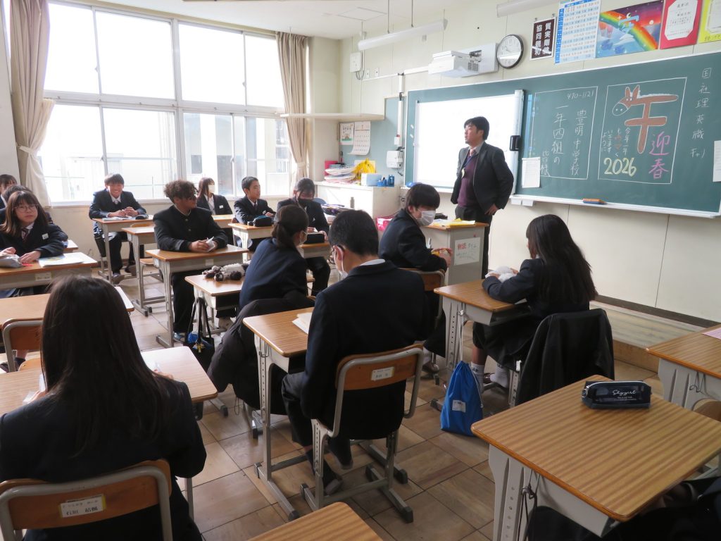 3学期始業式【1月7日(水)】 3学期始業式【1月7日(水)】 2026年1月7日 toyoakejhs 明けましておめでとうございます。新年の幕開けです。今日の始業式にみんな無事で、元気に顔を見せてくれたことが一番うれしいです。さらに始業式の態度はとても立派でした。新しい年を迎えてがんばろうという決意が感じられました。