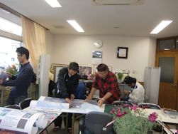 1月11日(土)会議室におやじの会の会員の中井さん、六平さん、横家さん、服部さん、纐纈さん、外村さん、上野さん、佐藤さん、鮫島さんが集まり、「ARISS中央小コンタクト」おやじの会プロジェクトを開始しました。きょうは、会場となる体育館に飾る10枚のパネル作りと国際宇宙ステーション(ISS=International Space Station)のプラモデル作りをしました。