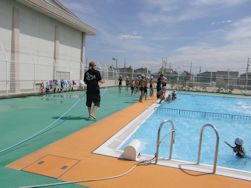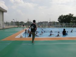 夏休みの分団ごとの水泳指導日に,プールでの監視のお手伝いをしました。夏休みの1日目である7月22日(月)から水泳指導最終日の7月31日(水)まで、全日予定を組みました。しかし、雨天のため7月24日(水)と7月29日(月)が残念ながら中止となってしまいました。それ以外の日は活動することができました。更衣室・トイレの戸締まりの確認をしたり、水の中に入っている子供達が安全であるか監視したり、途中でトイレに行きたくなった子の誘導をしたりしました。プール大好きな子供達の様子を楽しく見守ることができました。水泳指導にあたってくださる先生方、本当にありがとうございました。(おやじの会会長代行 築地良平)