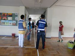 9月28日(土)は、中央小学校の運動会でした。この運動会の活動は、おやじの会にとってもメインイベントになります。おやじの会は、朝6時20分に会議室に集合して、本日の活動内容について打合せをし、安藤 誠校長先生から御挨拶を受け、体育主任の鈴木淳也先生からもお話しを聞きました。6時50分から駐輪場に白線を引いたり、道路に誘導線を引いたり、自転車整理の準備に取りかかりました。早い保護者は、すでに運動場の場所取りにやってみえました。7時50分からは、正門、運動場東門、さわやか門、駐輪場北門におやじの会会員が分かれて立ち、登校してくる子供達に挨拶の呼び掛けをしました。その後すぐに全員持ち場に着きました。昨年度に比べ出足は遅かったものの、土曜日と言うこともあって自転車の数はたいへん多く、約400台の自転車を整頓して並べることができました。。お昼ご飯を早めにすませ、昼食時間帯は校舎内の警備活動にあたりました。校舎内の教室や体育館内や校舎外のいたるところで、親子で楽しそうにお弁当をたべる姿を目にすることができました。これも運動会の大きな楽しみの一つだと感じました。午後2時50分に閉会式が終わりました。すぐに運動場後片付けのお手伝いやごみ拾いのお手伝いをして、すべての活動が終了しました。本日の活動に参加したおやじの会の会員は27人でした。過去最高の人数です。全員、やりきったと言う充実感でいっぱいでした。 最後に会議室で全員で記念撮影をして終了しました。