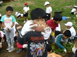 農園で作っていたサツマイモを収穫し、ふかして食べました。ただそれだけのことなのに、自分で掘ったいもは格別おいしく感じられました。