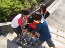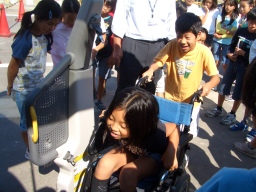 福祉体験として、車いすの介助を行ったり、点字を打ったりしました。他にも、トヨタ車体の方に来ていただいて、福祉車両の車いす試乗をさせていただいたり、車体が行っているボランティア活動について話を伺いました。体験してみて始めて分かる車いすの移動の大変さや、だからこ便利さなどが実感できたと思います。