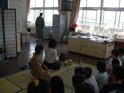 6年生は、総合的な学習で日本の伝統文化について勉強しています。この日は、茶道を体験しました。緊張しながら、お抹茶を点て、お菓子をいただきました。