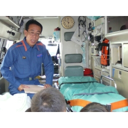 社会科の勉強で、消防署に見学に行ってきました。消防車は見かけますが、隊員の方たちが普段どんな訓練をしているか、119番を受けてどんなふうに出動していくのか分かりました。