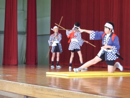 木曜日の児童集会では、各学年の歌の披露、部活やクラブ発表が行われました。